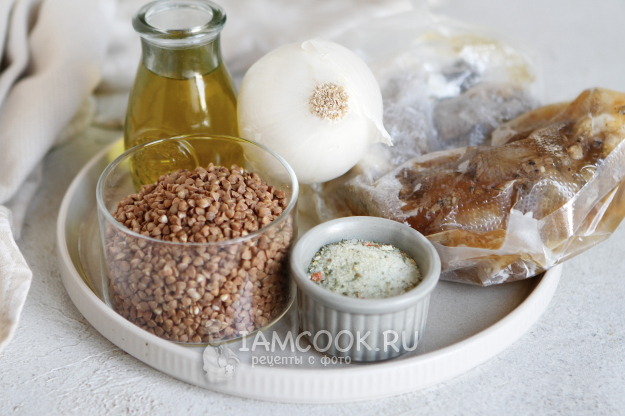 Соберите все продукты по списку и приступим к приготовлению гречки с тушенкой в аэрогриле.