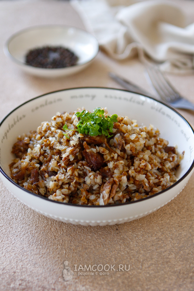 Гречка с тушенкой в аэрогриле готова.