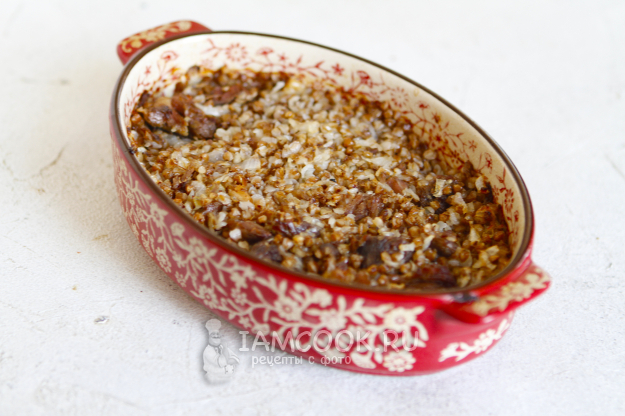 Установите форму в чашу аэрогриля. Готовьте блюдо при температуре 180 градусов в течение 25-30 минут. Ближе к концу приготовления проверьте готовность гречки. Если вода впиталась, а на зубок гречка вам покажется жестковатой, то влейте еще немного воды и продолжите готовить. Если же гречка к этому моменту будет полностью готова, то выключите аэрогриль и оставьте гречку в нем на 3-5 минут, чтобы она настоялась.