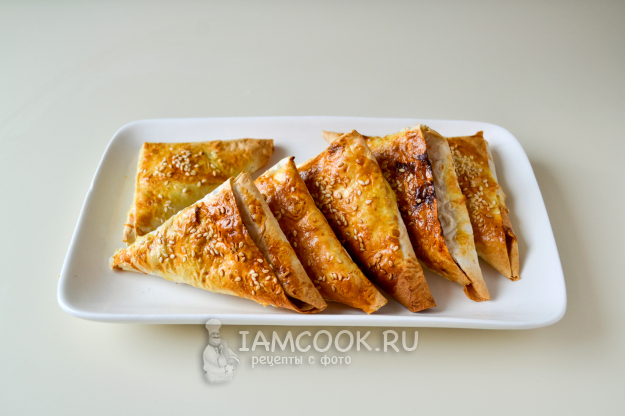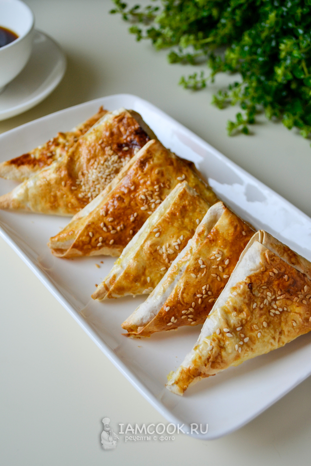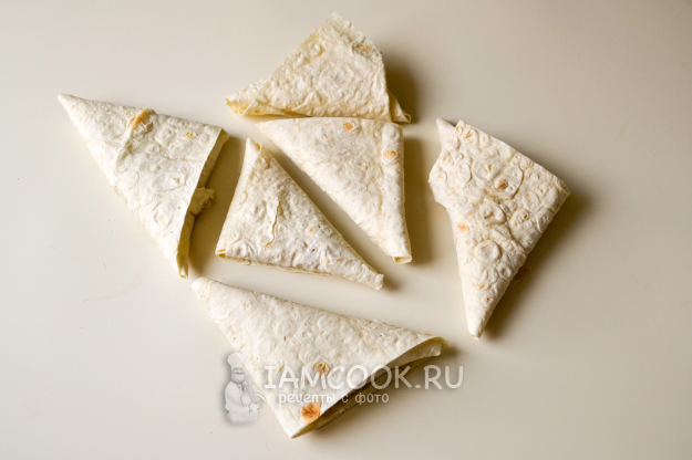 Подавать треугольники лучше сразу горячими, пока лаваш хрустящий.