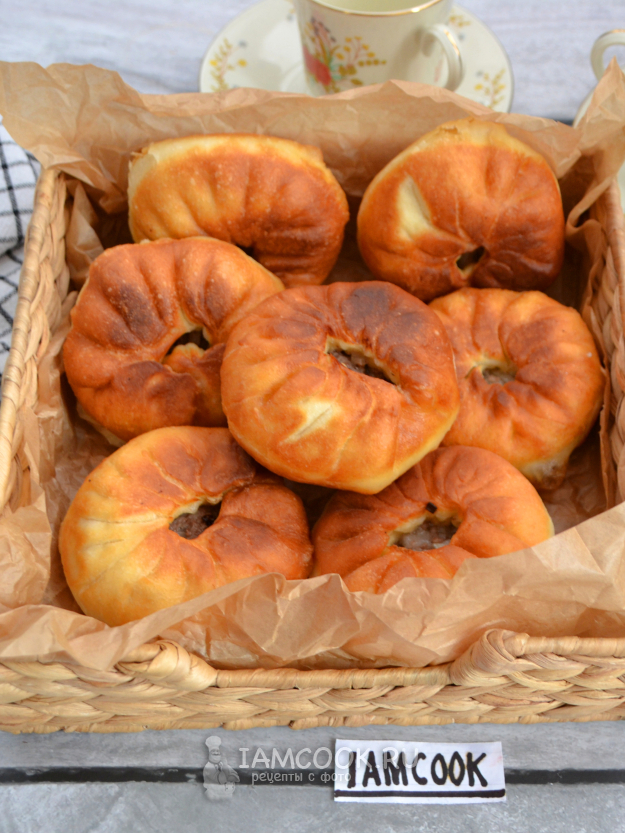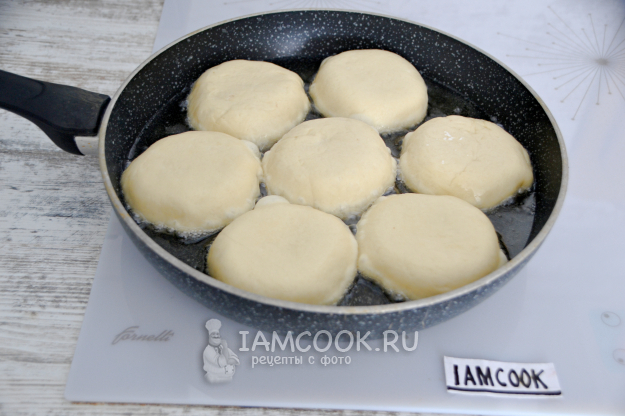 Выкладывайте кайнары в хорошо разогретое растительное масло отверстием вниз, понизьте температуру нагрева, чтобы кайнары успели прожариться внутри.