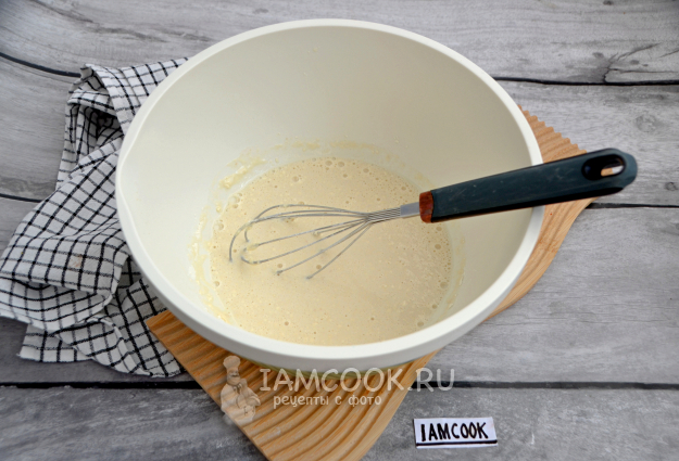 Добавьте в миску яйцо, соль, растопите и влейте в тесто сливочное масло, смешайте все ингредиенты.