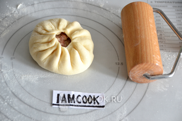 Защипните тесто по кругу, собирая тесто в складки.