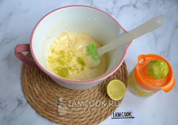 Добавьте во взбитую массу цедру лайма, смешайте.