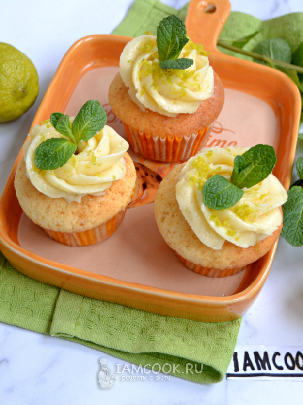 Капкейки «Мохито» получились очень вкусными, с легкой кислинкой лайма, свежестью мяты и ароматной ноткой рома. Посыпьте цедрой лайма.