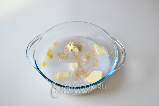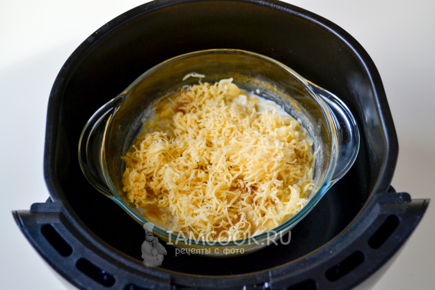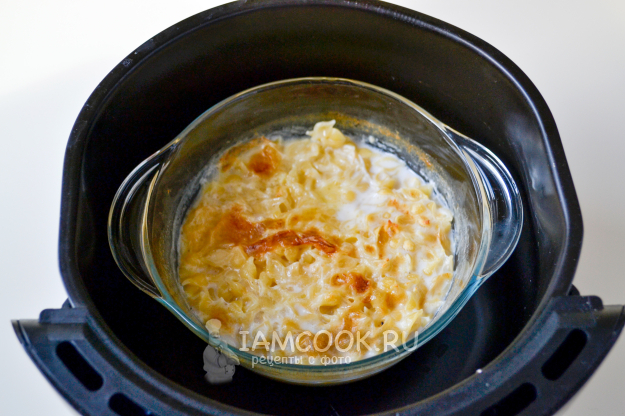 Влейте молоко и поставьте форму в чашу аэрогриля.