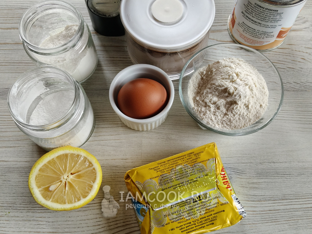 Возьмите необходимые ингредиенты, чтобы приготовить шоколадные орешки со сгущенкой.