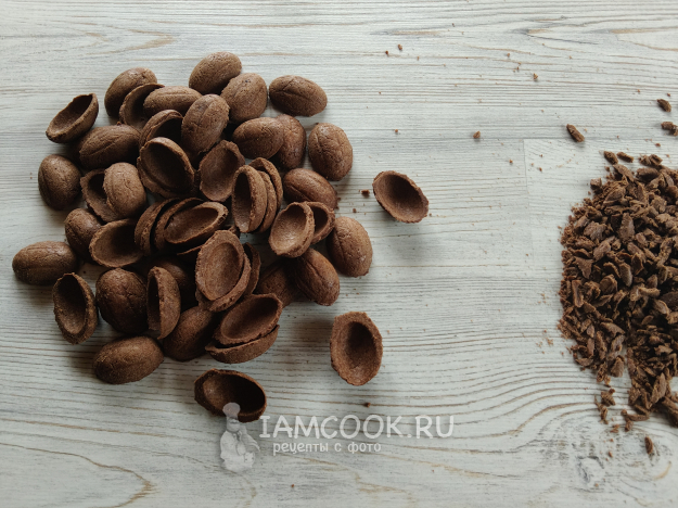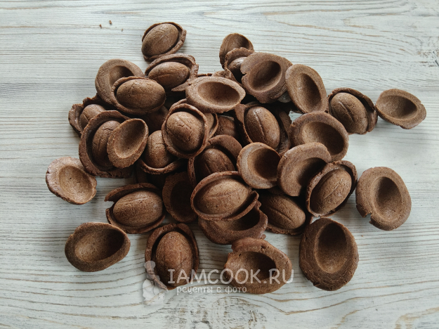 "Почистить" орешки от излишков по краям. Аккуратнее, печенье хрупкое.