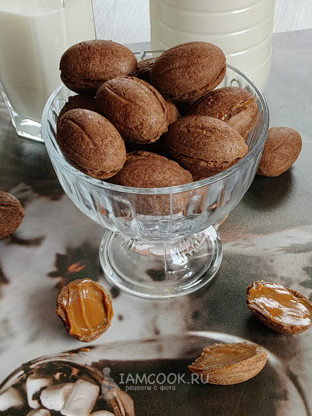 Шоколадные орешки со сгущенкой готовы.