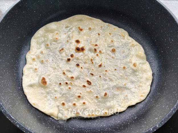 Перевернуть несколько раз, чтобы лепешка испеклась.
