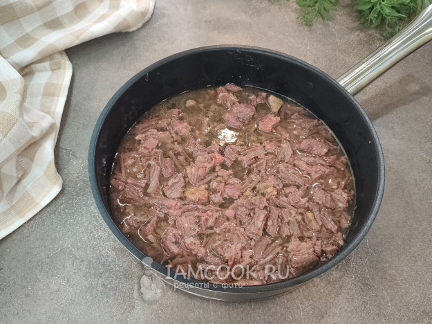 В сковороду выложите тушенку, прогрейте.