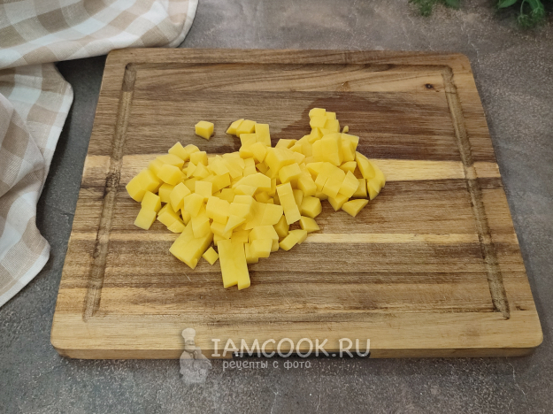 Картофель нарежьте мелким кубиком - быстрее приготовится.