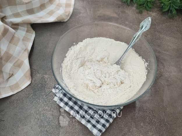 Постепенно, частями добавляя муку, замесите тесто сперва вилкой или ложкой.