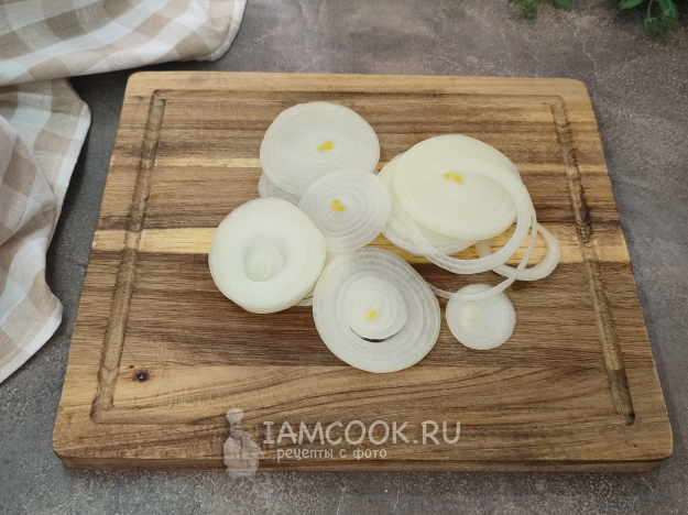 Лук нарежьте кольцами.