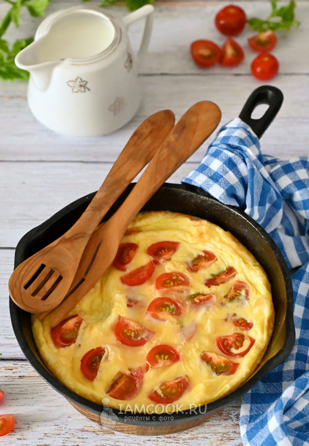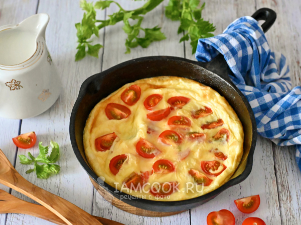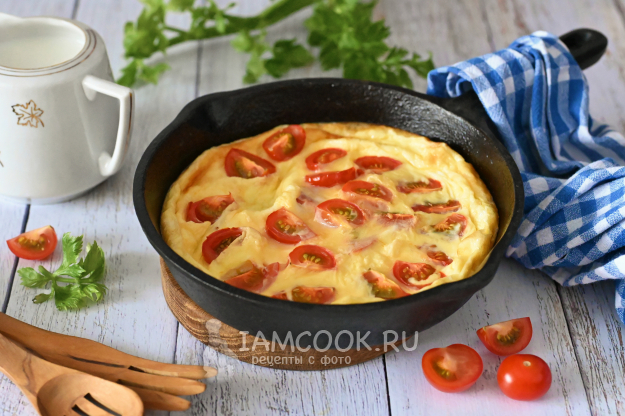 Омлет с помидорами черри готов. Подавайте его к столу в этой же сковороде.