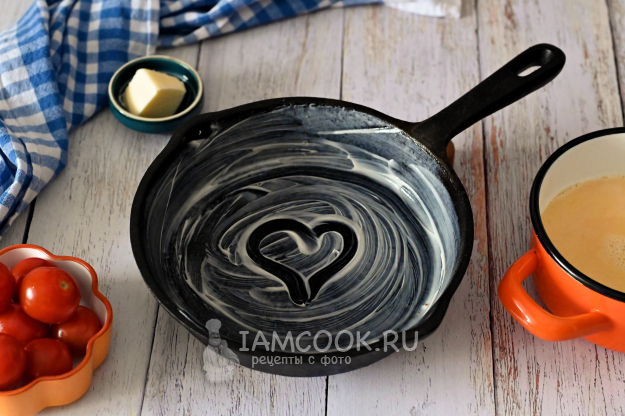 Небольшую порционную сковороду смажьте сливочным маслом.