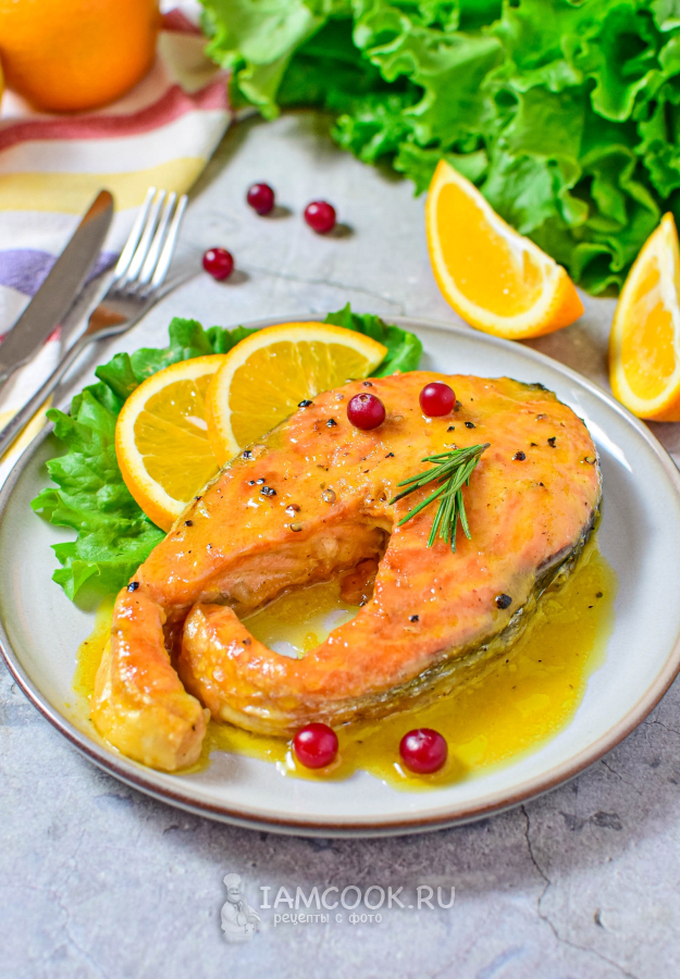 Лосось в апельсиновом соусе готов! Можно сразу подавать к столу.