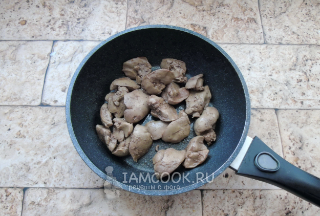 Накройте сковороду крышкой и тушите печень на минимальном огне почти до готовности.