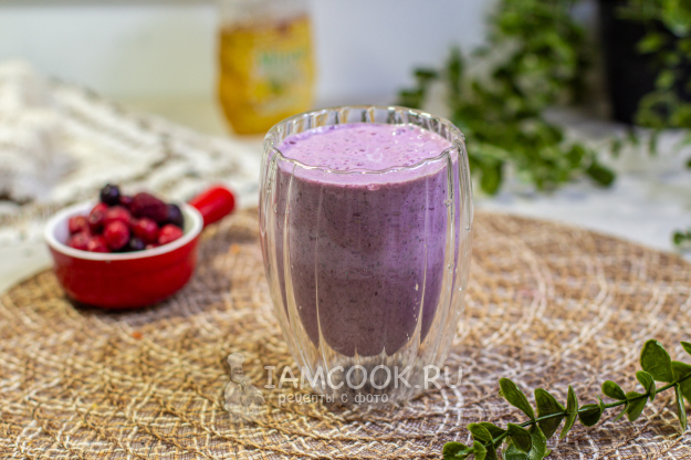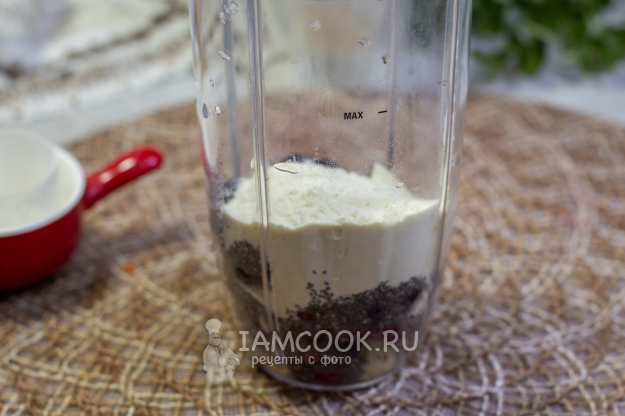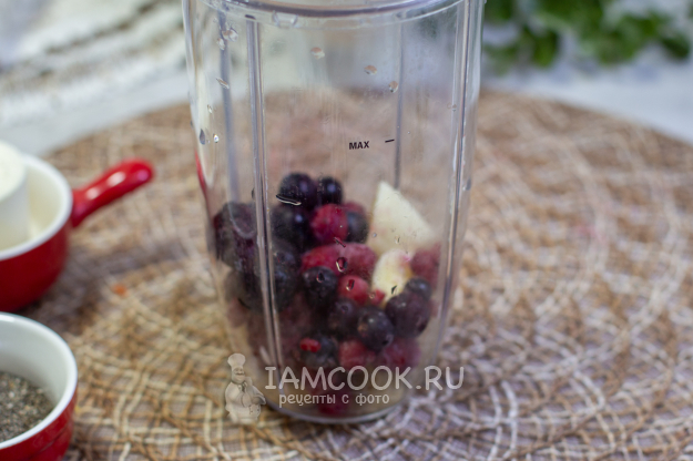Соберите необходимые продукты для приготовления смузи с бананом и протеином. Для приготовления смузи я взяла молоко, спелый банан, ягоды, немного семян чиа и сывороточный протеин со вкусом клубники. У меня протеин достаточно сладкий, но если вы предпочитаете более сладкий вкус - добавьте немного сахарозаменителя или меда.