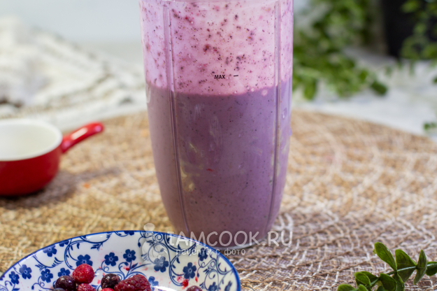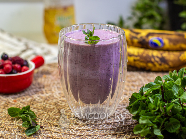 В стакан для взбивания добавьте любые на ваш вкус ягоды и очищенный банан.