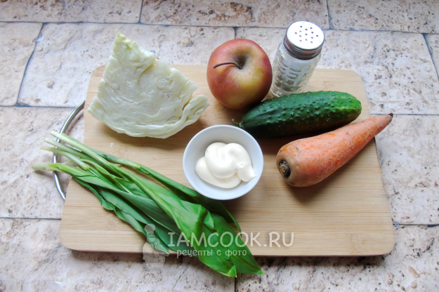 Соберите ингредиенты для приготовления салат из черемши с капустой.
