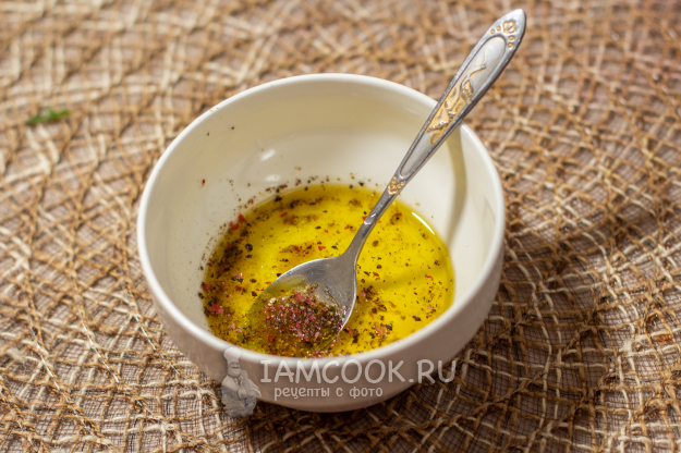 Для заправки салата смешайте оливковое масло, сок лимона, мед, соль и черный молотый перец.