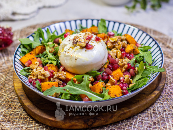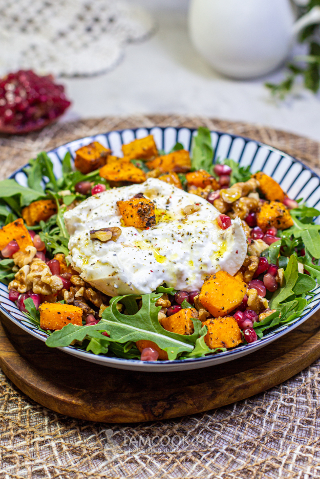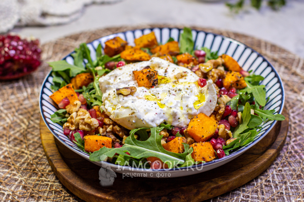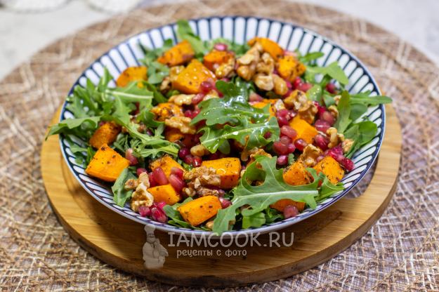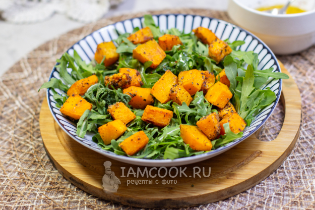 Вкусный и полезный салат с рукколой и тыквой готов! Подавайте его к столу. Приятного аппетита!