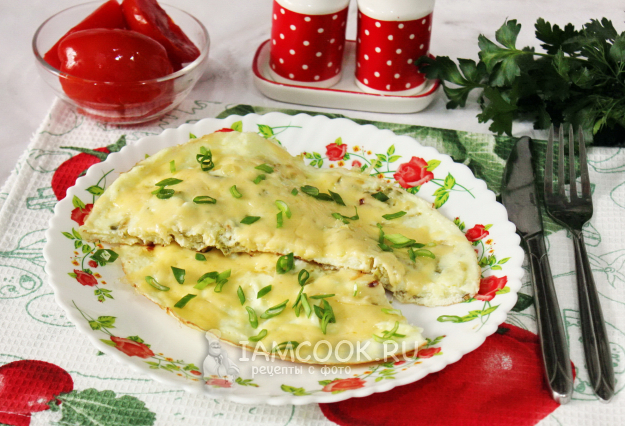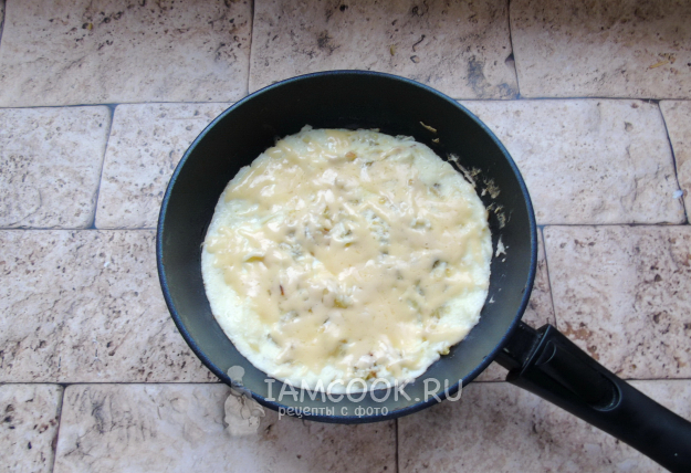 Затем натрите на терке сыр и посыпьте им омлет.