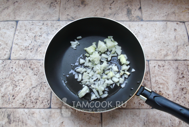 Репчатый лук очистите, помойте и мелко нарежьте. Выложите в сковороду с растительным маслом.