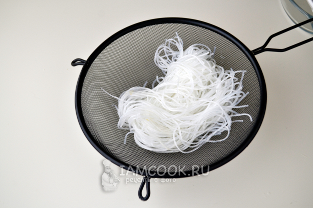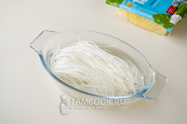 Рисовую лапшу залейте кипятком на 10 минут.