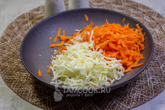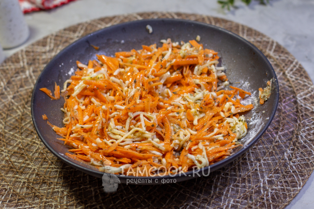 К моркови добавьте натертый сыр.