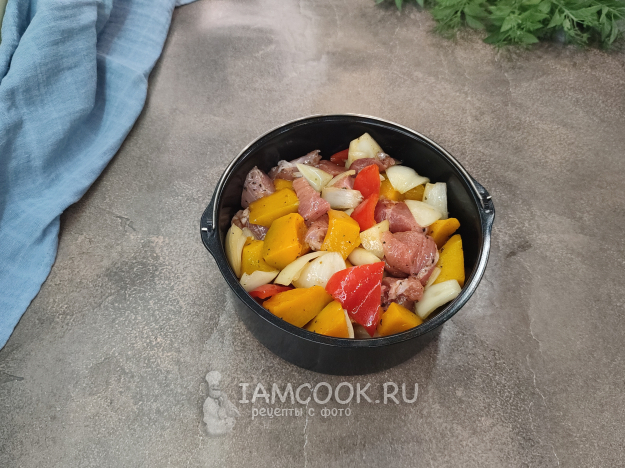 Выложите подготовленную смесь в форму для запекания, которая поместится в ваш аэрогриль, я использую форму от самого аэрогриля.
