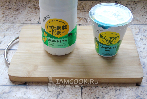 Для приготовления творожного сыра потребуется только кефир и сметана.