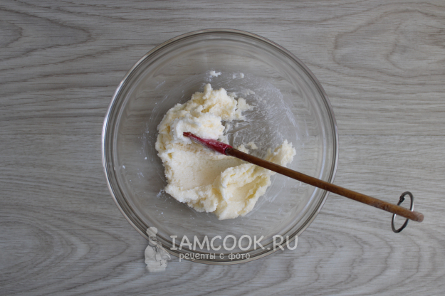 К моменту, когда опара запузырится, сливочное масло вполне размягчится, чтобы можно было его перетереть со всем остальным сахаром, в т.ч. ванильным.