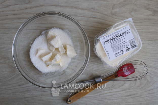 Для теста сливочное масло, нарезанное кусочками, нужно оставить при комнатной температуре размягчаться.