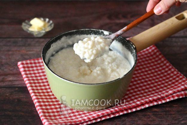 Снимите с огня и добавьте в получившуюся рисовую кашу сливочное масло.