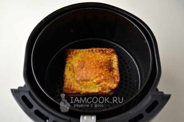 Запекайте при 180-190°С примерно 5-6 минут. Время запекания будет зависеть от мощности аэрогриля. Готовый "горячий кармашек" должен быть хорошо запечен, румян. Хлеб должен стать аппетитно хрустящим, сыр - расплавленным.