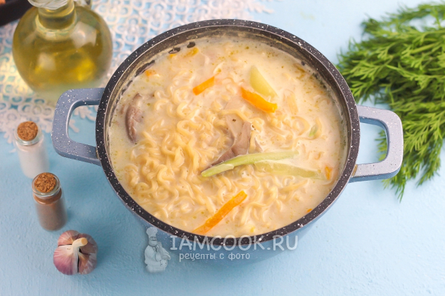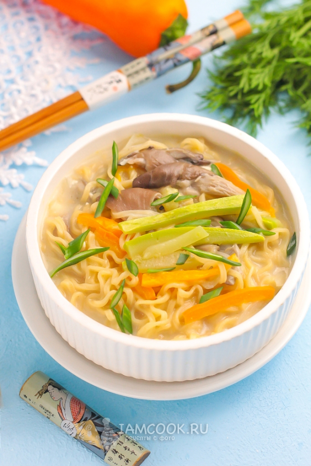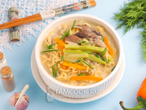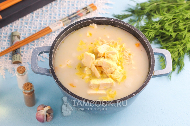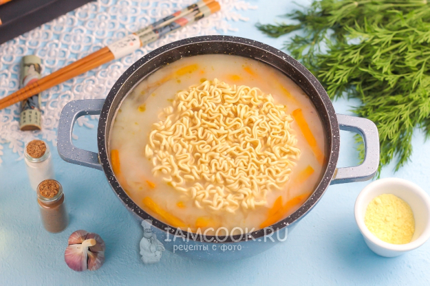 Джин рамен с сыром полностью готов! Попробуйте его на вкус и подкорректируйте, если это потребуется.