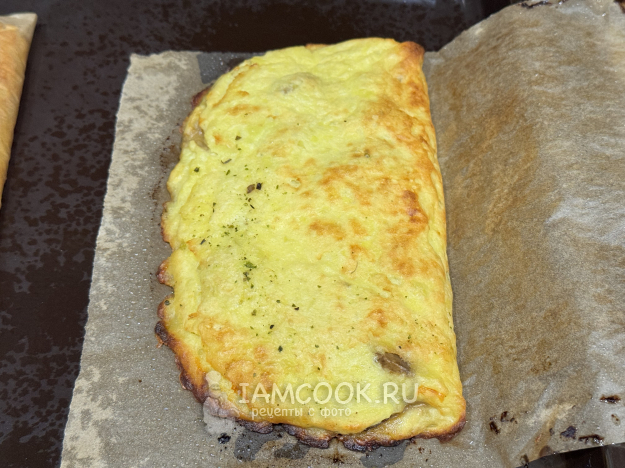Сложить пергамент с картофельной массой и грибами пополам и выложить на противень. Запекать ленивые зразы в разогретой духовке при 180 градусах примерно 15-20 минут.