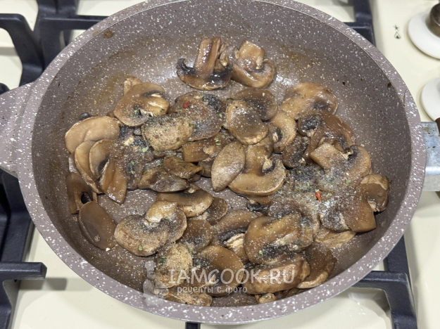 Пока картошка варится, шампиньоны промыть и нарезать. В сковороде с добавлением растительного масла обжарить шампиньоны в течение 15 минут, затем посолить и снять с огня.
