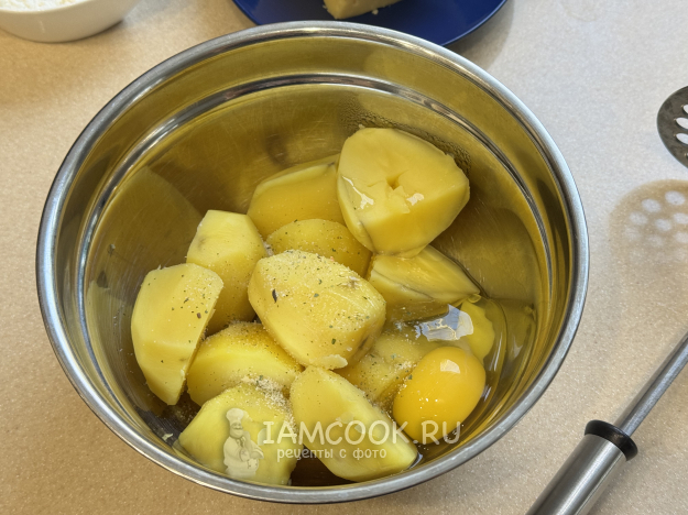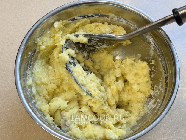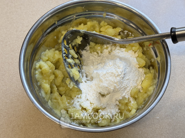 Размять картошку в пюре, добавить муку.