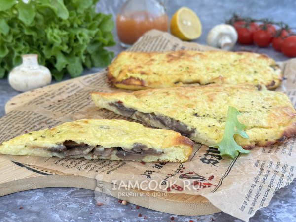 Выложить на половину картофельной массы грибочки в один слой.