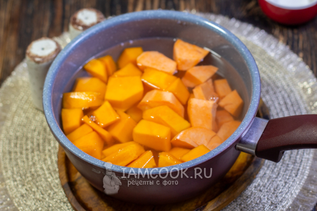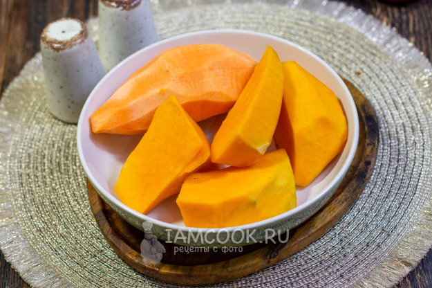 Подготовьте по списку необходимые продукты для пюре из батата и тыквы.