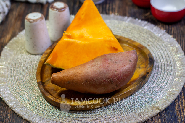 Батат и тыкву очистите от кожуры. Промойте чистой водой.