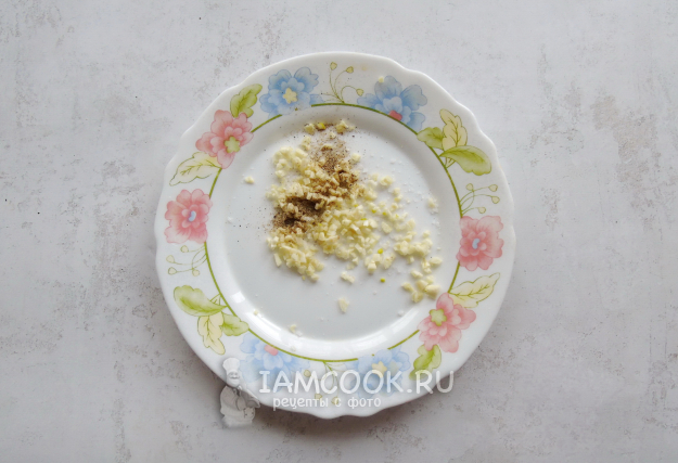 Чеснок очистите, измельчите, посолите и поперчите.