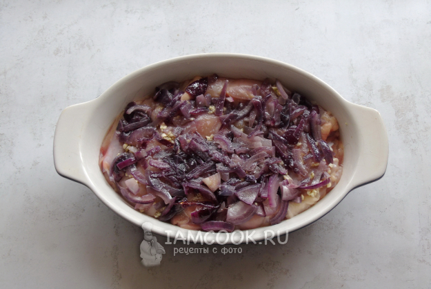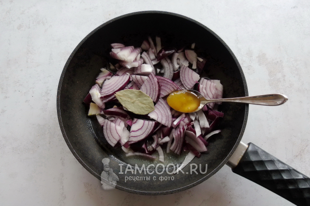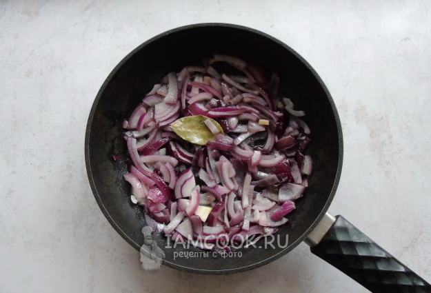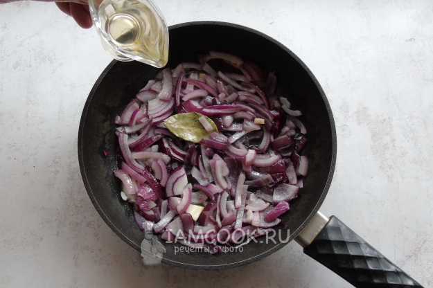 Разложите сверху жареный красный лук.
