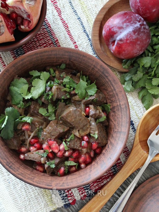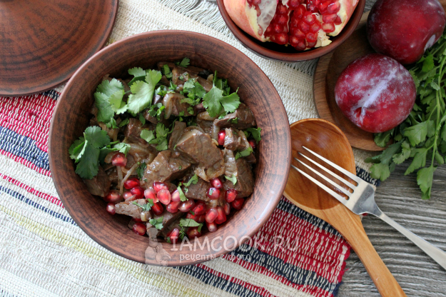 Кучмачи по-абхазски принято подавать с зернами граната и кинзой.