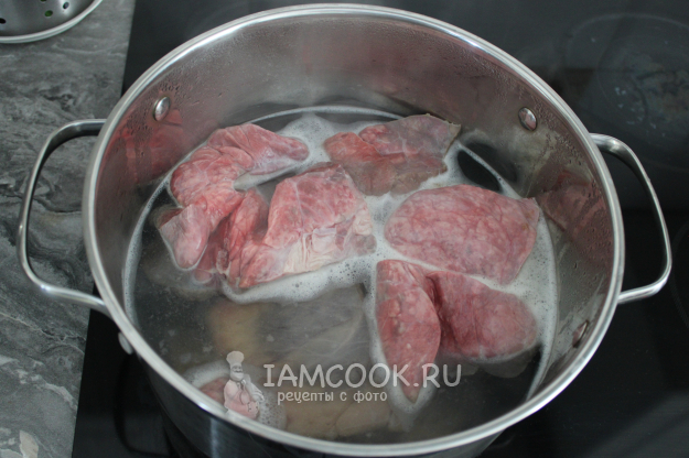 Куски говяжьего сердца и лёгкого предлагаю варить вместе. От сосудов их не зачищала, т.к. это проще сделать потом, уже у варёных.