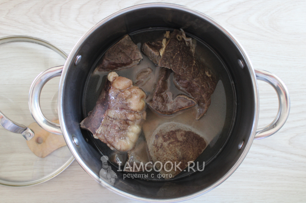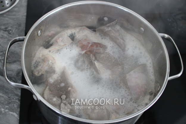 Первую воду с накипью слейте, а потом около двух часов варите в свежей на слабом кипении, проверяя готовность.