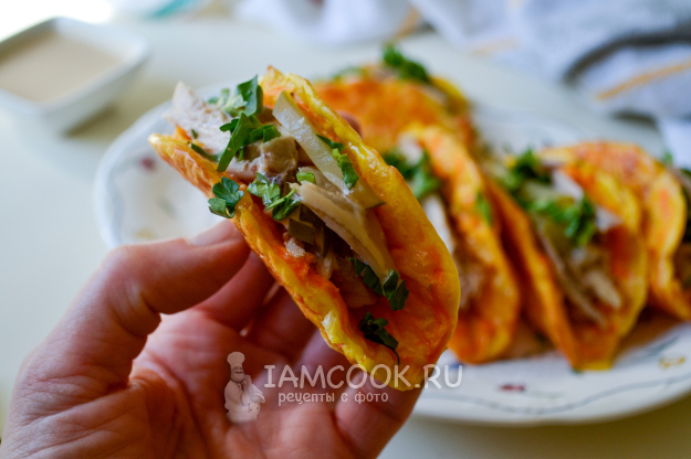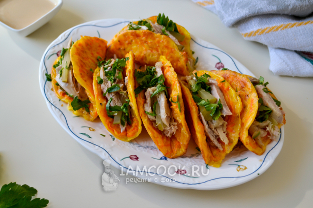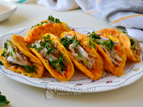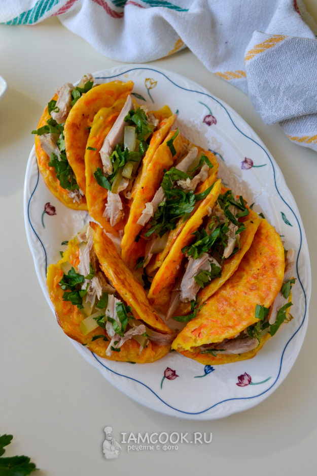 Морковные тако с курицей и сыром готовы к дегустации.